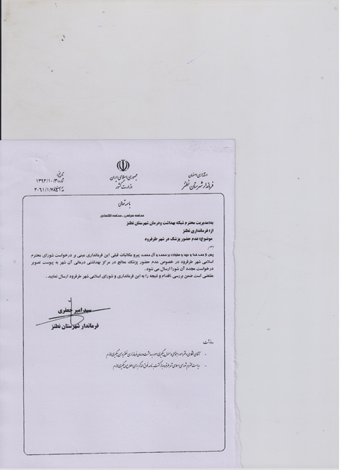 ما برای رسیدن به جایگاه واقعی شهرمان راه درازی در پیش داریم و در این راه نیاز به همت جمعی و همراهی همه مردم وجود دارد لذا از مسئولین محترم تقاضاداریم خود را برای ارایه یک گزارش پر بار به مردم اماده کنند اگرچه مردم خود شاهد و ناظر کلیه اقدامات هستند . در پایان امیدوارم بتوانم در حوزه بهداشتی درمانی و فرهنگی در خدمتتان باشم و هر از گاهی مطلبی برای مطالعه دوستان ارایه نمایم .برایتان آرزوی موفقیت و بهروزی دارم .