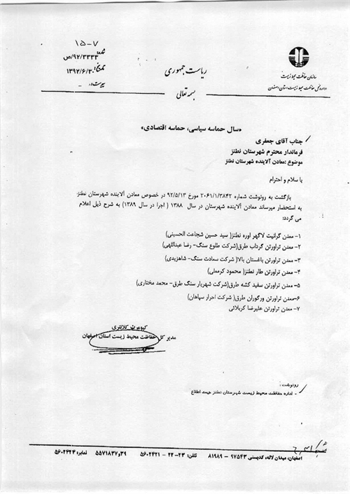 باطلاع همشهریان عزیز طرق رود رسانیده می شود ، با پیگیری فرماندار محترم و سایر مسئولان و اعضای شورای طرق رود ، ۵ معدن این شهر از طرف سازمان محیط زیست استان اصفهان آلاینده محسوب شده است . این معادن شامل :